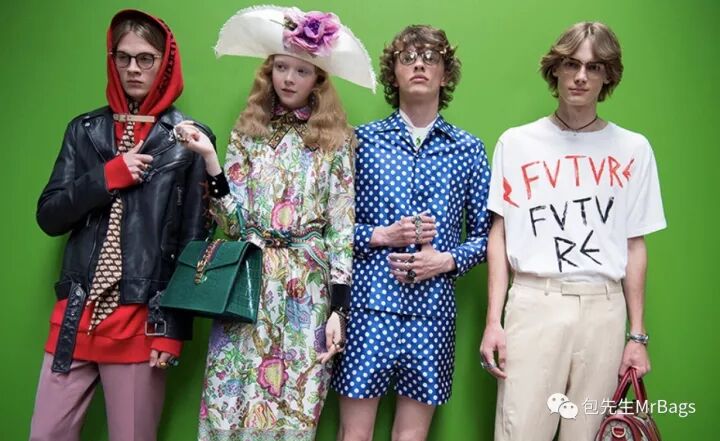 2015春夏Menswear系列Alessandro Michele上任后,给Gucci带来了崭新的高级文艺复古风,打破了男女之间的性别隔阂,这种耳目一新的结构设计大受欢迎,自然也带动了Gucci巨大的销量增长。