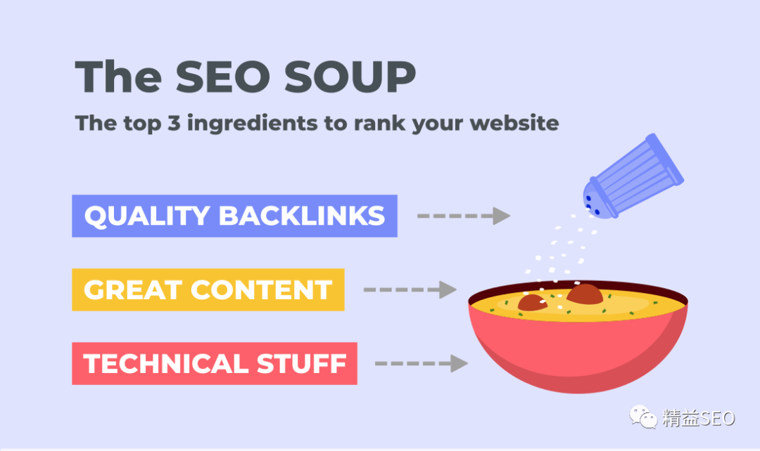 SEO的三个关键性方面:1. 控制技术材料——碗代表您需要囊括的大部份控制技术方面(通常称为控制技术或页面 SEO)没有合适的碗,就没有小东西能盛汤2. 高质量文本——汤代表你中文网站的文本——最重要的部分低质量的文本=没有名列,就这么单纯。